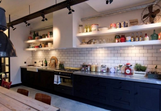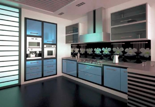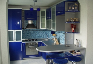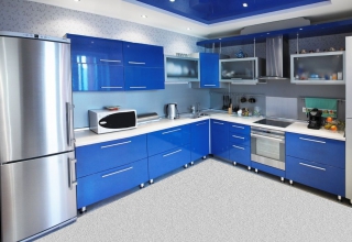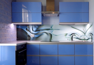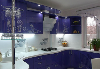 Кухня с фасадами из МДФ покрытыми матовой эмалью. Столешницы из массива дерева.